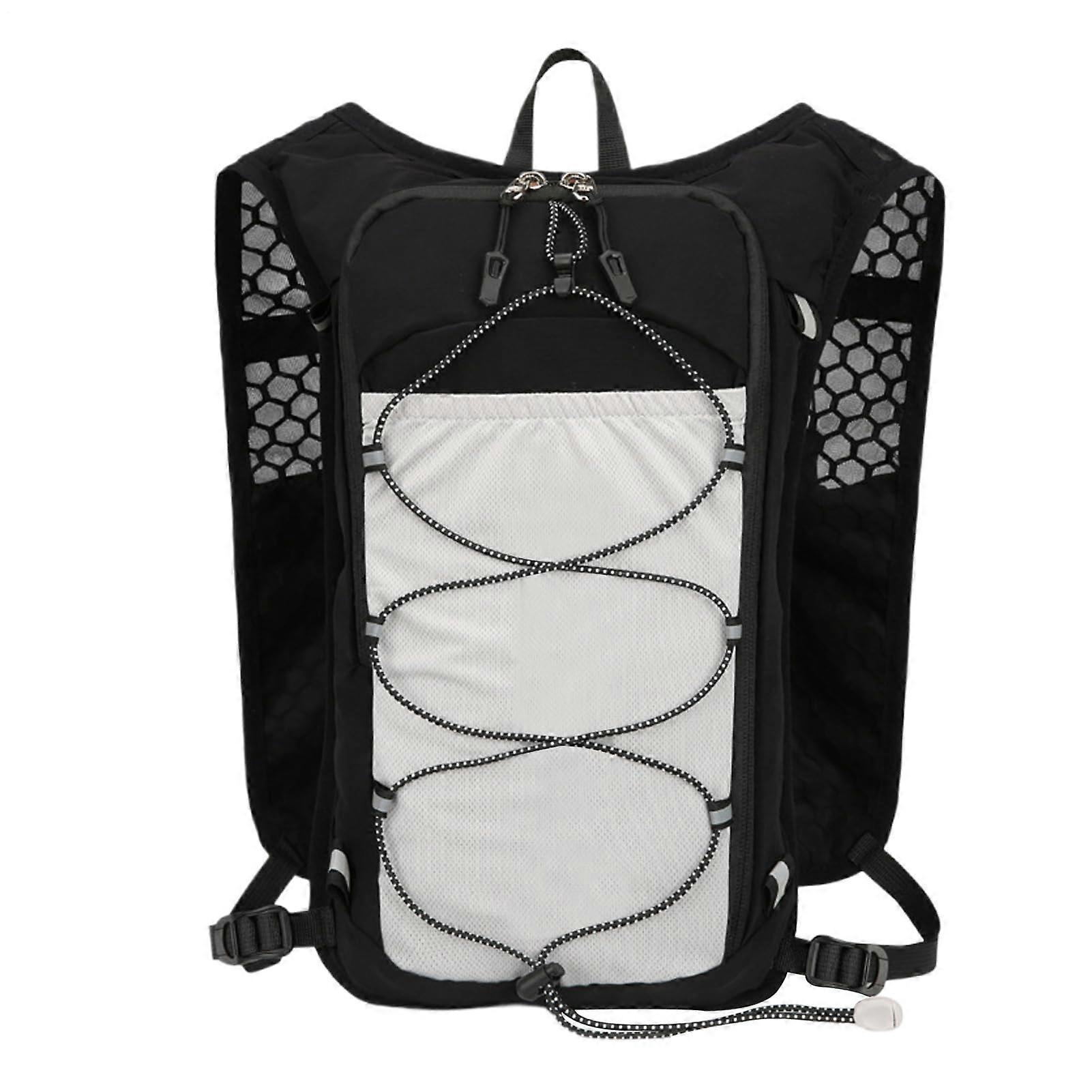 1. Durable Material: This hydration pack is made from quality nylon and polyester blends for performance. 2. Large Capacity: Enjoy the spacious design and enhanced safety features of the main compartment. 3. Optimized Comfort: This hydration pack features adjustable shoulder straps and side pockets to fit various body shapes. Enhanced with density breathable mesh, it effectively absorbs moisture for a comfortable workout experience. 4. Stay Visible: With reflective shoulder and back strips, this hydration pack ensures you stay safe and visible.