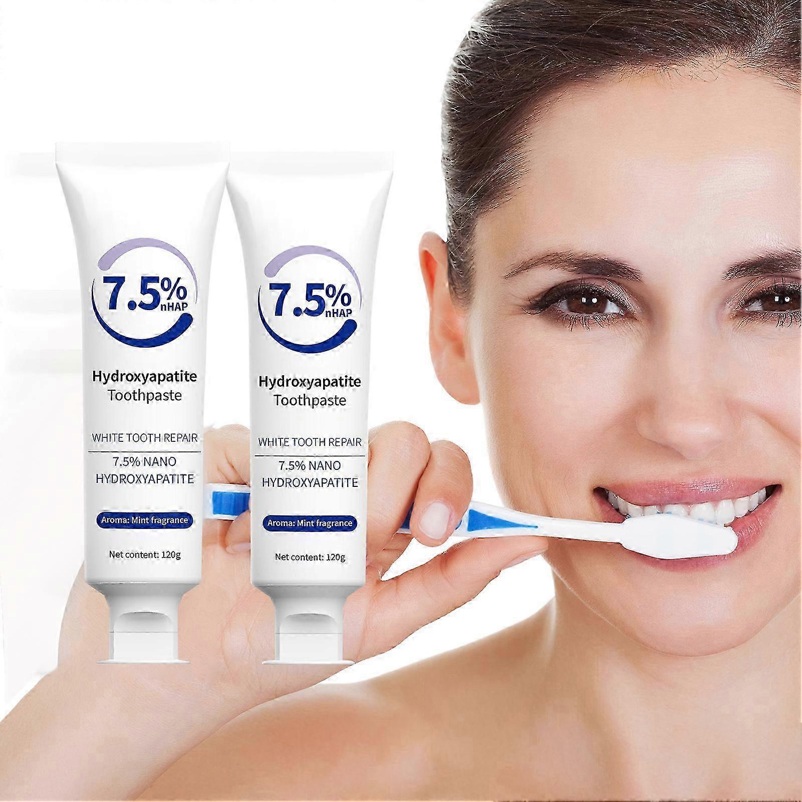 【Gentle & Effective Cleaning for Sensitive Teeth】Our hydroxyapatite toothpaste offers a gentle yet thorough cleaning experience, ideal for those with sensitive teeth. With its advanced formula, this toothpaste with hydroxyapatite provides an effective solution that cleans your teeth without causing discomfort or irritation, making it perfect for daily use to maintain optimal oral hygiene.【Advanced Enamel Protection & Tooth Repair】Experience superior protection with our hydroxyapatite toothpaste 7.5. Enriched with hydroxyapatite, this toothpaste hydroxyapatite helps to repair and protect your enamel, reducing the risks of tooth decay and erosion. The powerful formulation strengthens enamel, leaving your teeth protected from daily wear and tear, promoting a healthier, radiant smile.【Hydroxyapatite Formulation for Robust Dental Care】Our hydroxyapatite toothpaste is formulated with natural hydroxyapatite, a mineral known for its ability to strengthen and repair enamel. This toothpaste with hydroxyapatite helps to seal microgaps in enamel, providing lasting protection against damage caused by food and drink. Experience the benefits of this powerful mineral in your daily oral routine.【Long-Lasting Freshness & Confidence】Boost your confidence with the long-lasting freshness of our hydroxyapatite toothpaste whitening. This toothpaste not only cleans but also freshens your breath, leaving you with a clean, refreshed mouth that lasts. Enjoy a confident smile all day long while improving your oral hygiene with every brush.【Fluorine-Free for Safe Oral Care】Our 7.5 hydroxyapatite toothpaste is fluorine-free, providing a safer and gentler alternative to traditional toothpastes. This toothpaste with hydroxyapatite protects your enamel without the use of harsh chemicals. Prioritize your dental health with a product that strengthens teeth, whitens naturally, and ensures safe, effective care without compromise.confident smile as it improves oral hygiene. Our Fluorine-free toothpaste ensures safe and effective care without harsh materials, prioritizing your dental health. Item Name: Toothpaste Material: Other Shelf Life: 3 YearsNet Content: 120gIngredients: Hydroxyapatite, Silica, Cellulose GumFeatures: Natural, Teeth Whitening, Deep Cleaning Size Details: Length: 16.2cm/6.38" (Approx.) Notes: Due to the light and screen setting difference, the item's color may be slightly different from the pictures.Please allow slight dimension difference due to different manual measurement. Package Includes: 1pc:1 x Toothpasteor2pcs:2 x Toothpastes