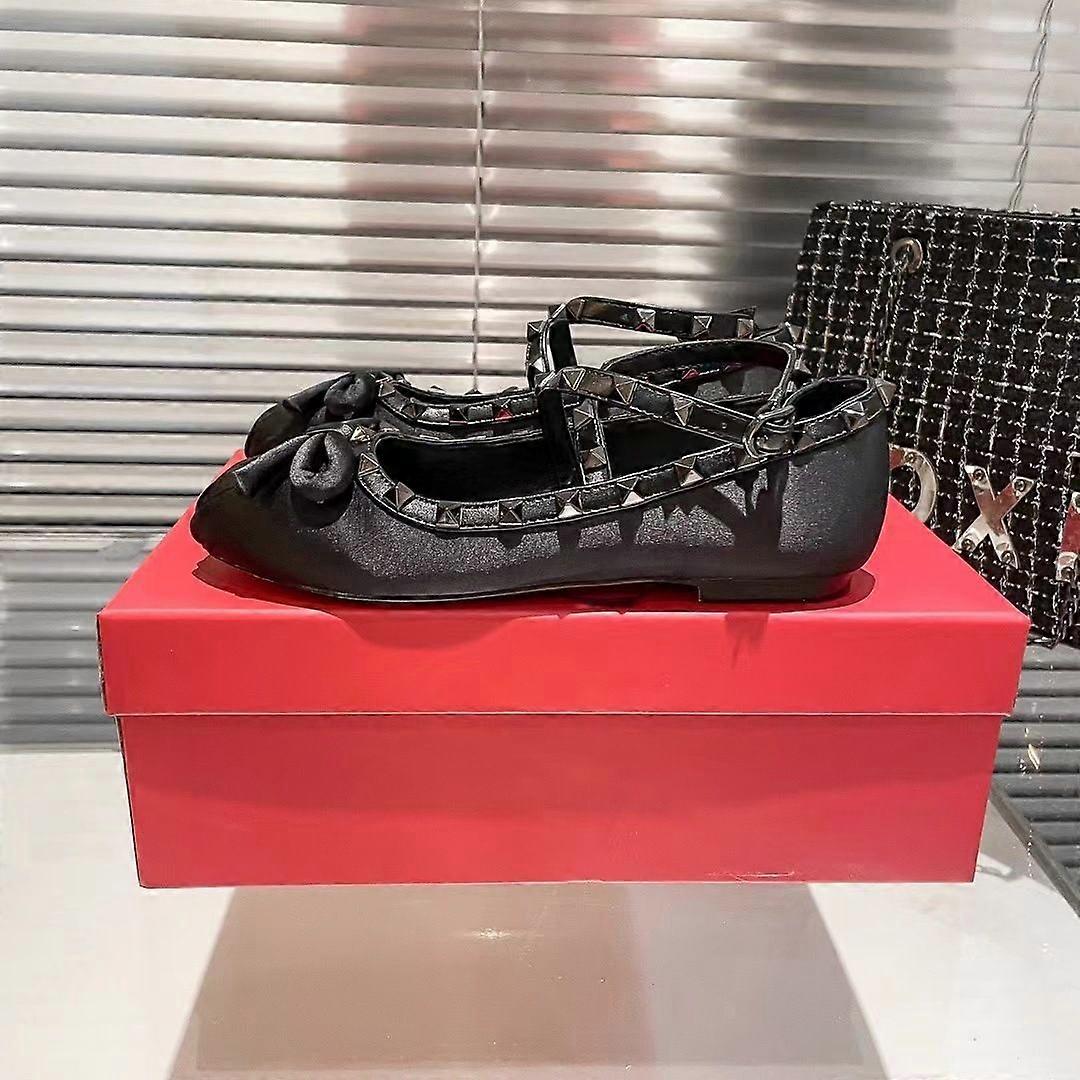 High Version V Home Cross Strap Ballet Shoes Fairy Bow Rivet Flat Silk And Satin Shoes Women