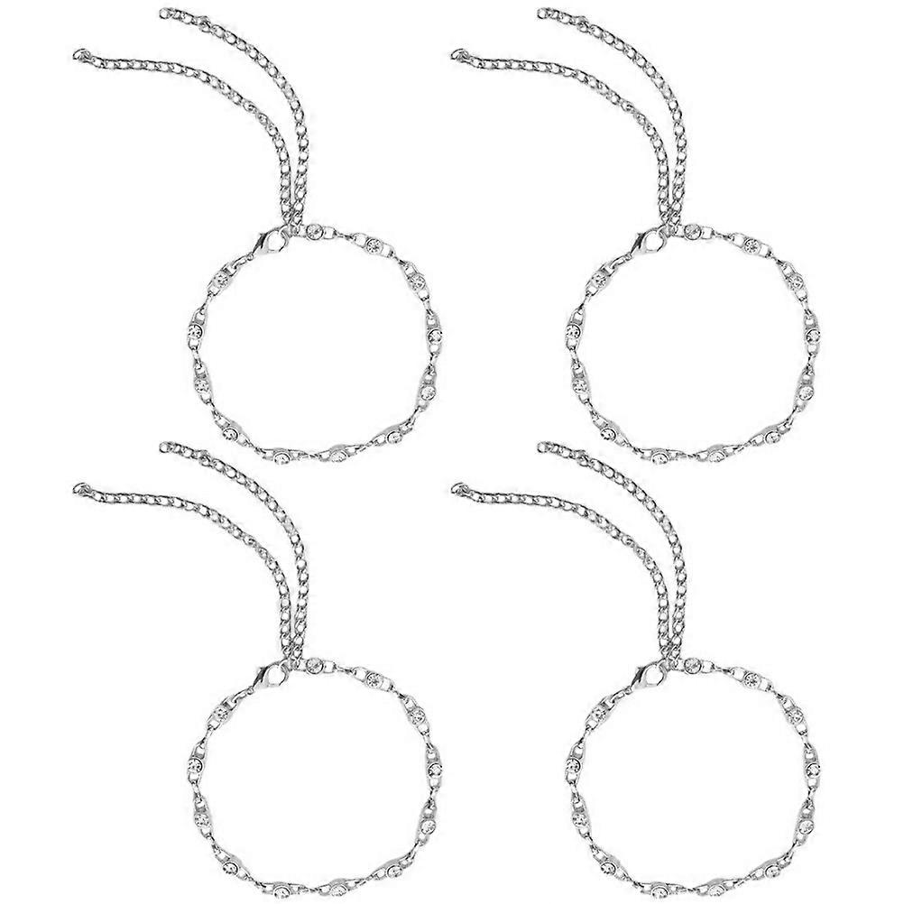 Anti Drop Strap for High Heels Rhinestones Ankle Chain Women Girls Silver Alloy Decorative 4Pcs