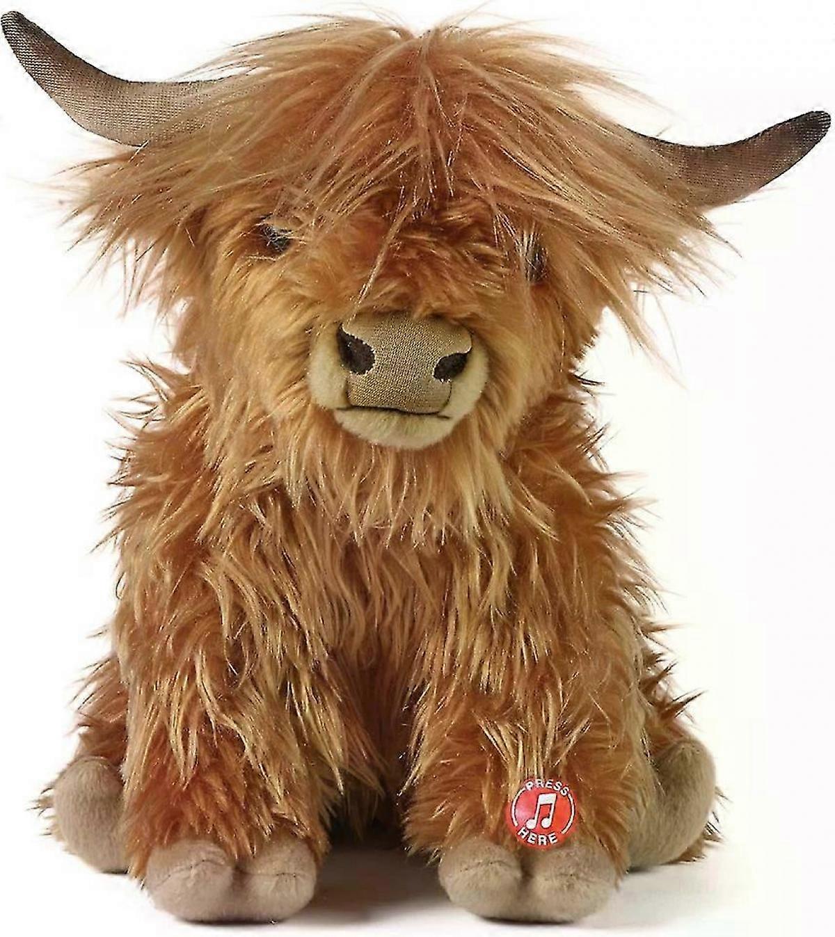 Highland Cow Brown Stuffed Animal, Farm Toy with Sound, Soft Toy