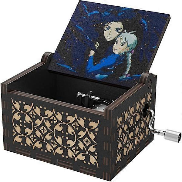 Howl's Moving Castle Wooden Music Box, Anime Theme Merry Go Round of Life Hand Cranked (Black)