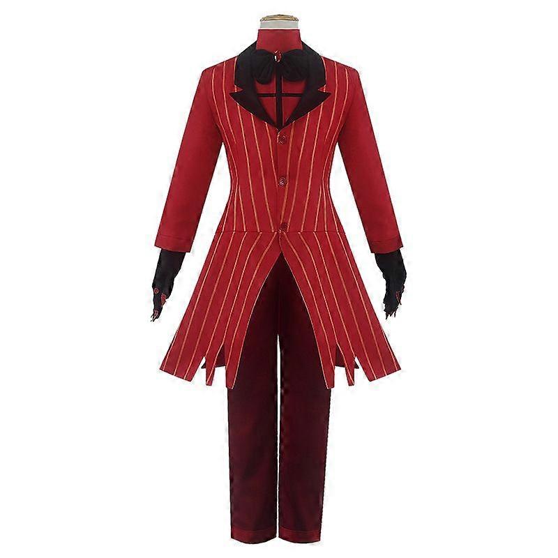 Hazbin Hotel Alastor Cosplay Costume Red Striped Tailcoat Suit with Bow Tie & Gloves Demon Radio Host Outfit for Halloween