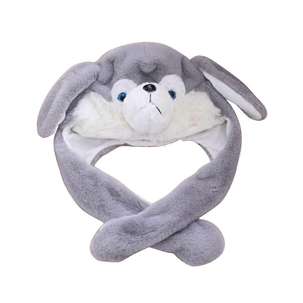 Huskies Hat Plush Dog Up Ears Hat for Wearing Use Grey