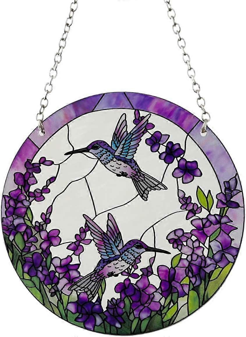 Hummingbird Stained Glass Suncatcher, Hand-Painted Colorful Home Décor Art, 10-Inch Window Decoration