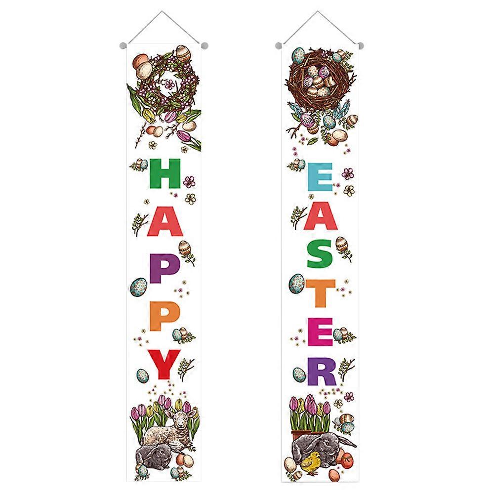 Happy Easter Door Banner for Home Decor Multi Color Oxford Cloth Digital Printing Reusable 28 x 40 Inches