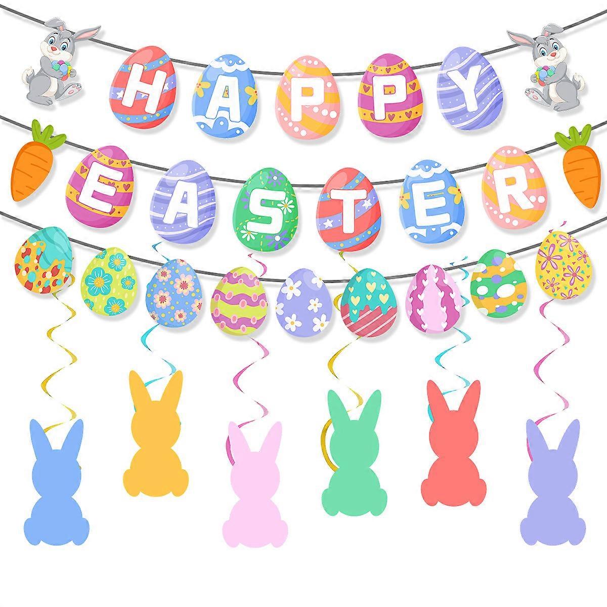 Happy Easter Banner, Easter Bunny Banner, Colorful Decorative Hanging Decoration, Easter Egg Banner for Mantel, Front Door, Style B