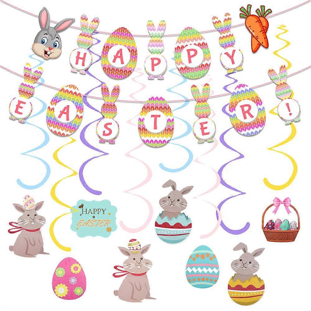 Happy Easter banner, 1 piece Happy Easter banner garland and ceiling hanger Easter bunny & Easter eggs spiral for hanging for Easter decoration Easter