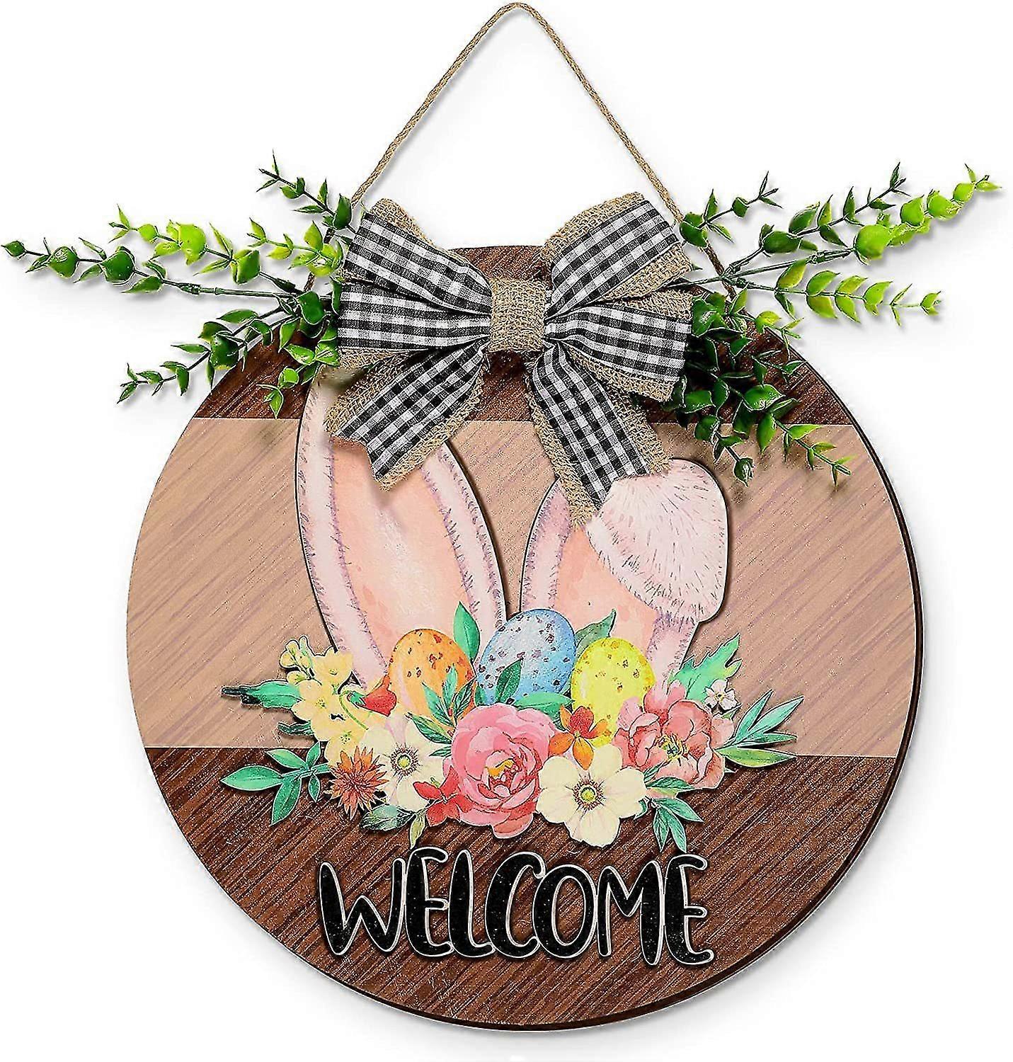 Happy Easter Wooden Hanging Sign Easter Welcome Sign Door Decoration with Bow, Rustic Easter Wooden Door Hanger for Home Farmhouse Window Indoor Outdo