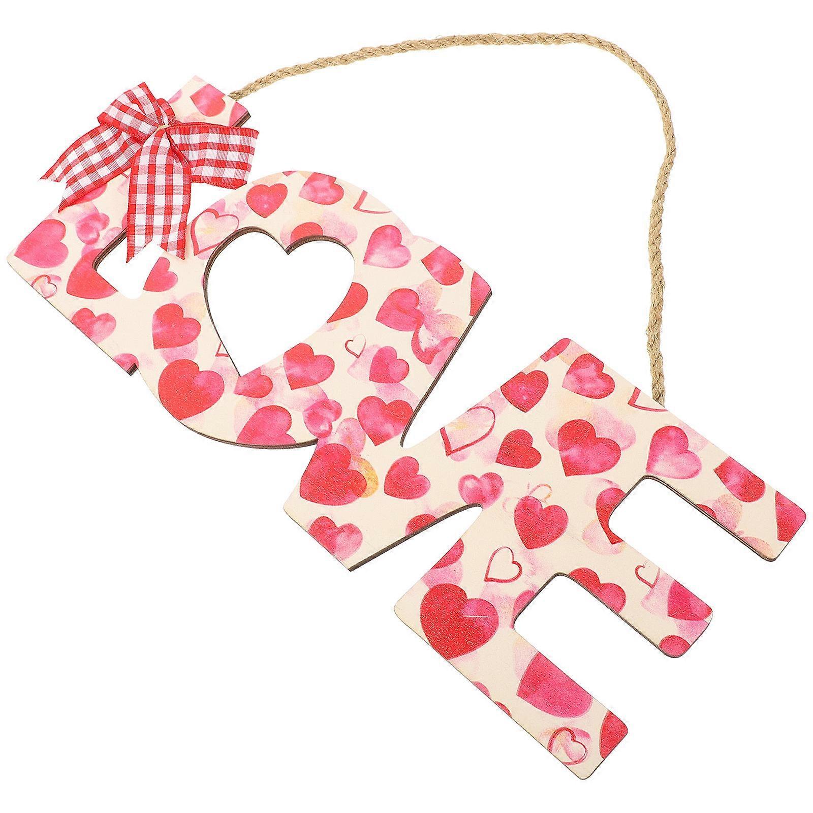 Happy Valentine's Day Door Decor Letter Shape Bow Appearance Wooden present For Couples 32X25CM 1Pcs