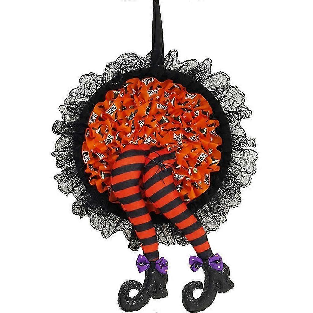 Happy Halloween Funny Witch Leg Wreath with Ruffle Lace Skirt Front Door Hanging Garland Party Supplies Wall Decoration