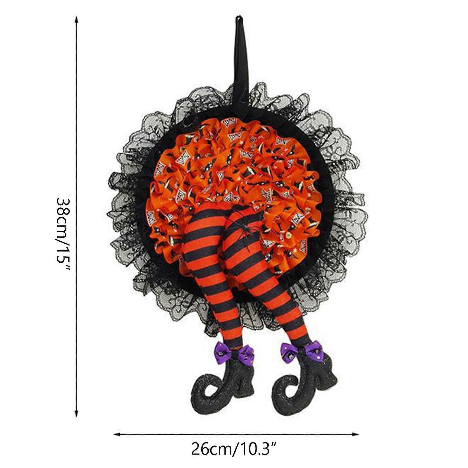 Happy Halloween Funny Witch Leg Wreath with Ruffle Lace Skirt Front Door Hanging Garland Party Supplies Wall Decoration Purple