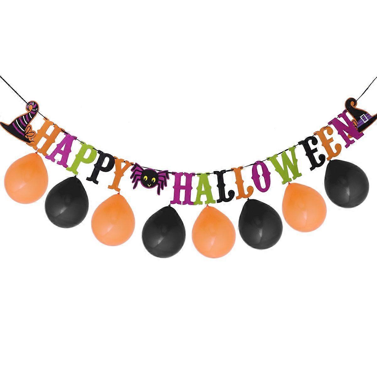 Happy Halloween Banner with Balloon Decorative Banner Hanging Garland Halloween Party Supplies