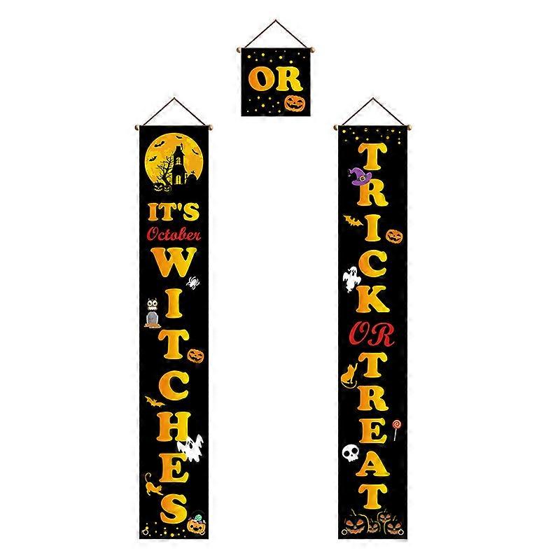 Happy Halloween Banner - Halloween Front Door Banner Decorations - Halloween Porch Sign Banner Outdoor/Indoor, Trick Or Treat Couplet Banner, For Par