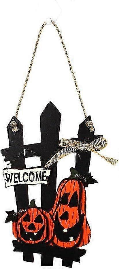 Happy Halloween Hanging Sign, Welcome Sign Pumpkin Wreath Door Pendant for Halloween Decoration