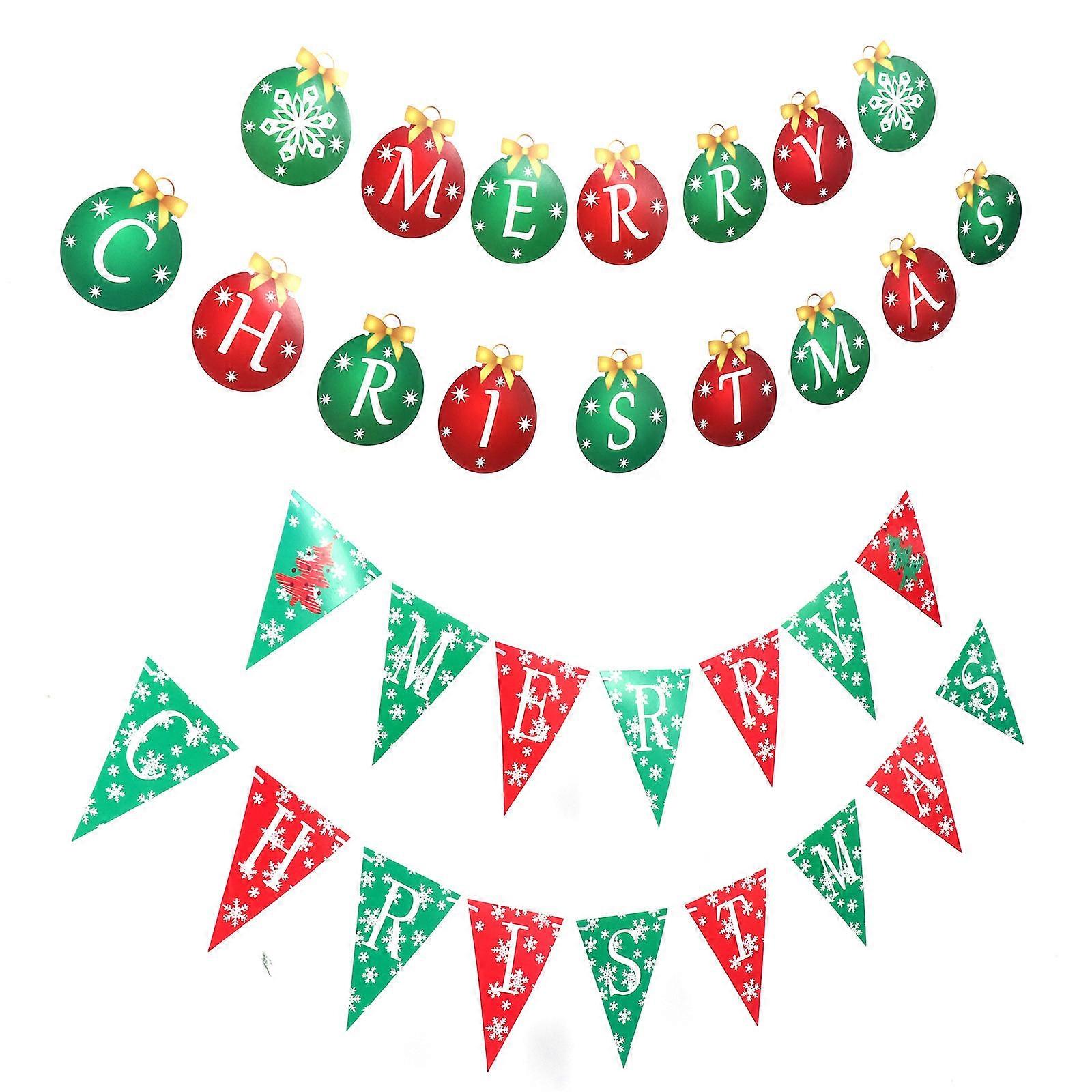 Happy Holiday Decorations Christmas Enthusiasts Paper Bunting Banner Flags Triangle Shape Wall Decoration 2Pcs