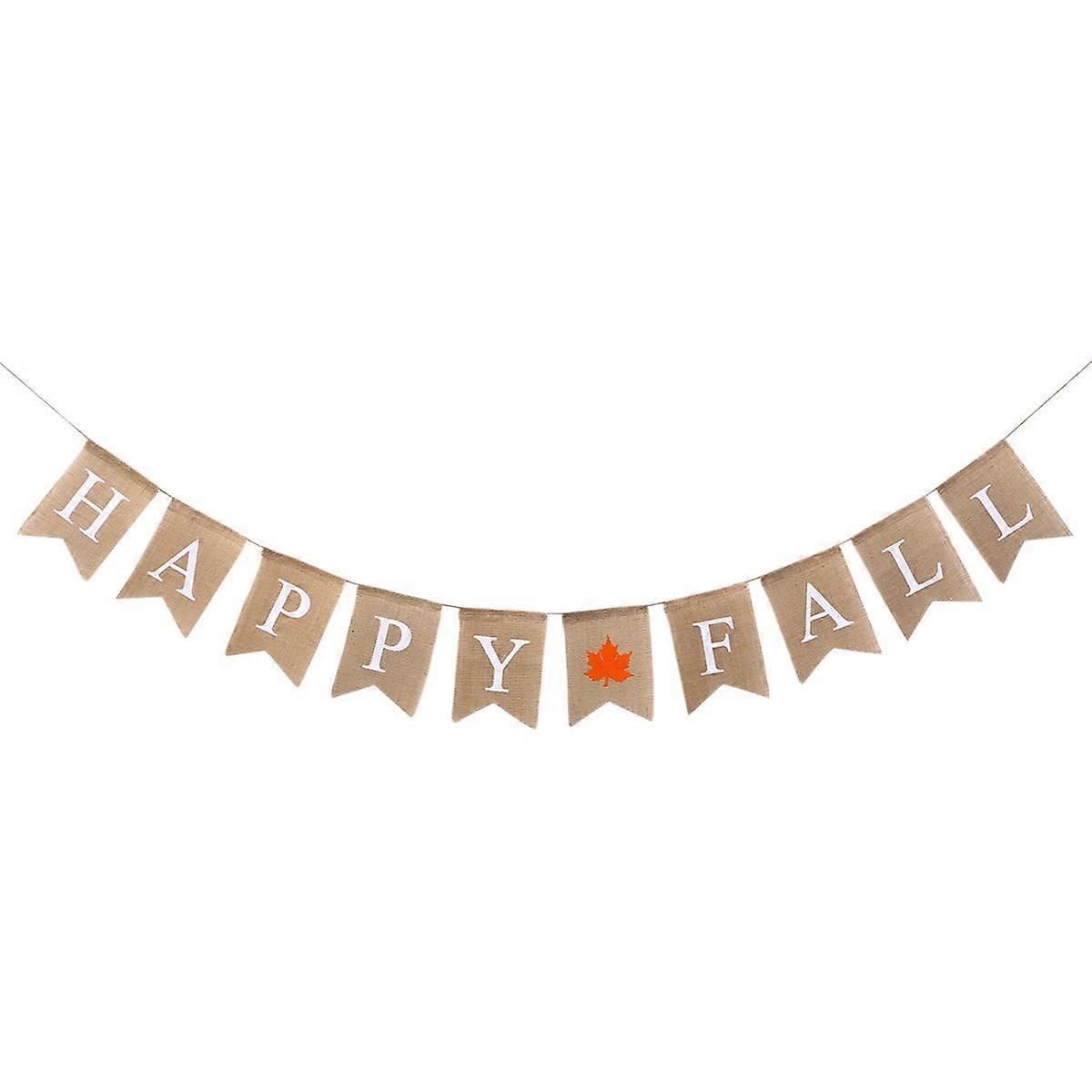 Happy Fall Letters Bunting Banner Decoration Linen Burlap Banner Swallowtail Pull Flag Party Supplies for Thanksgiving (Maple)