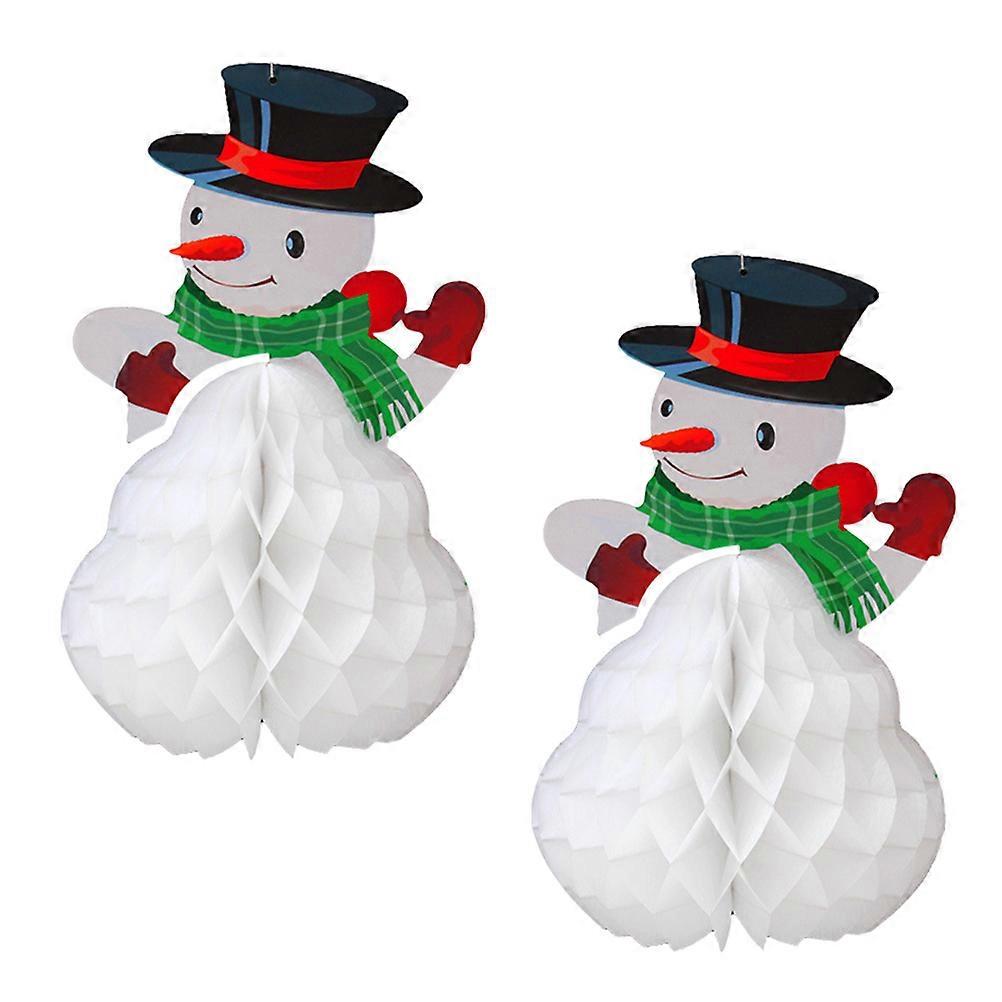 Honeycomb Tree Decor 2Pcs Christmas Tree Ornaments Snowman With Hat Hanging Decoration For Festive Holiday In Multi Color