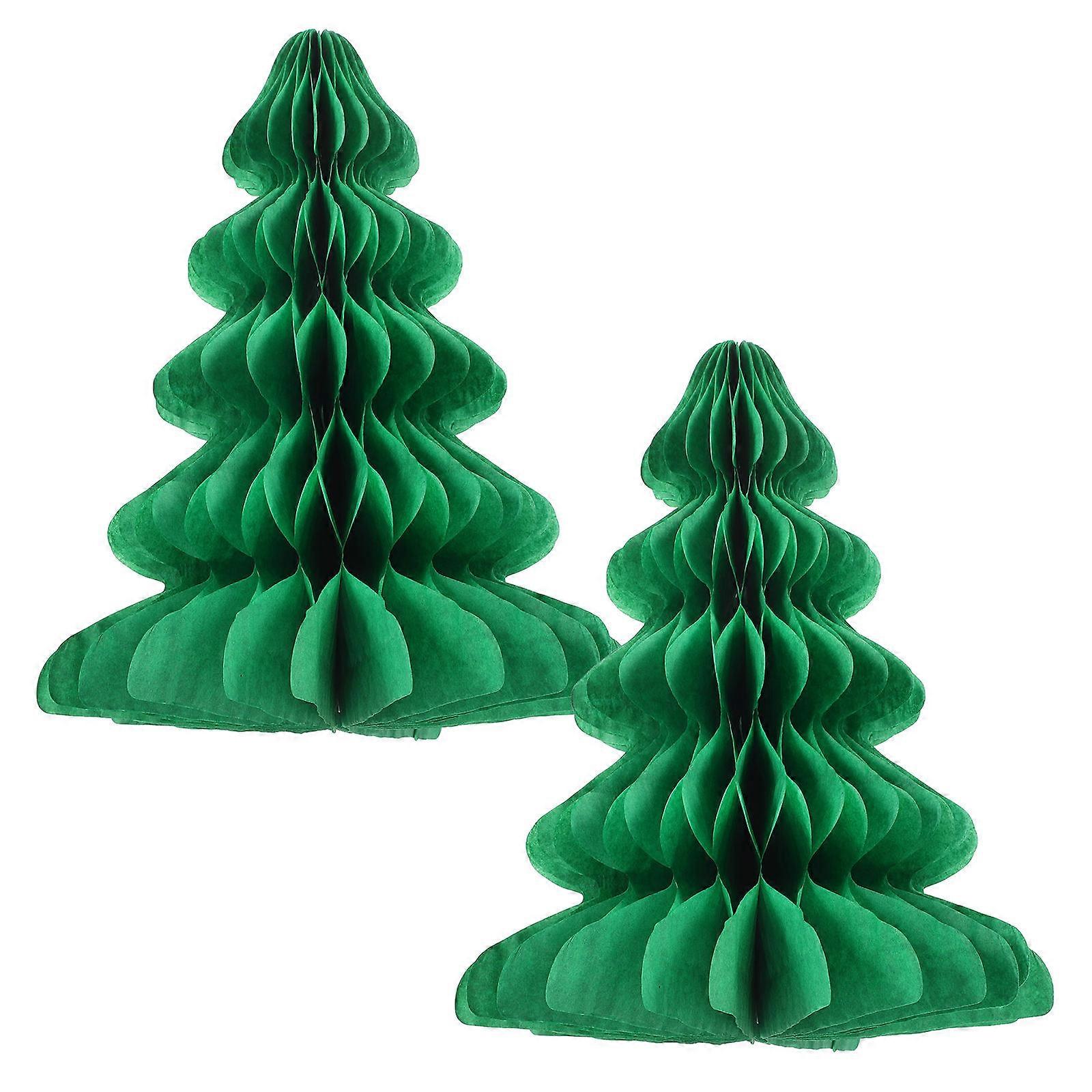 Honeycomb Paper Tree Festive Design Hanging Decorations Green 30.00X22.00X22.00CM Christmas Table Decor 2Pcs