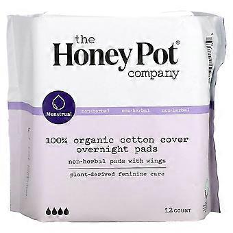 The Honey Pot Company, Organic Non-Herbal Pads with Wings, Overnight, 12 Count