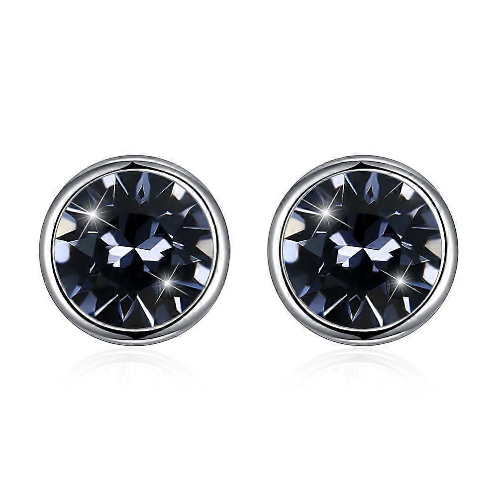 Hanie Swarovski Earrings 8mm Round Studs in 925 Sterling Silver with Black Purple Aurore Boreale Crystals Unisex Non-Allergenic