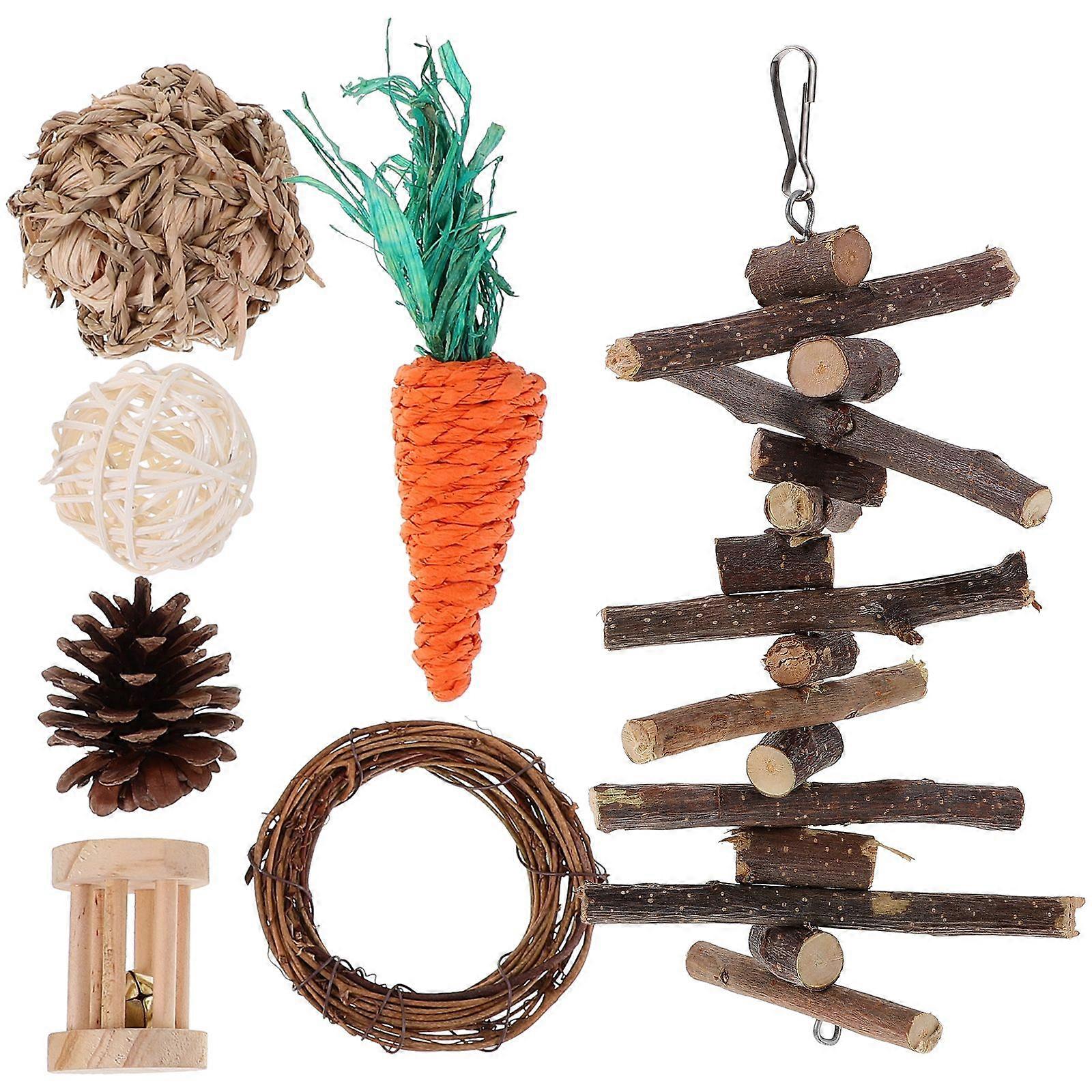 Hamster Toys Molar Ring Wood Sticks Rattan Ball Small Drum Carrot Chew Toys Playthings for Gerbils Mice Rats and Other Small Animals