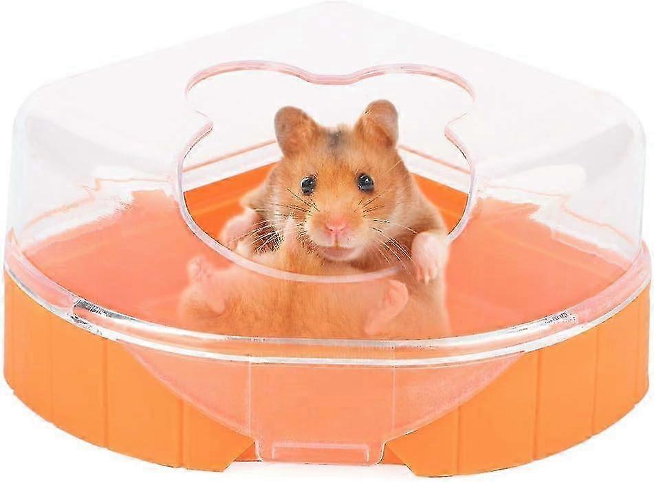 [Hamster sand bathroom]: This is a small pet sand bathroom with roof and shovel, help keep your small pets and the cage clean [Translucent]: This hamster bathroom adopts translucent design with window The corner toilet is visually spacious and bright for sand bathing small animals [Widely Application]: This corner toilet tray is widely used for totoro chinchilla hamster, ferrets, Syrian hamster, golden bear and other small rodents [Package Included]: The package comes with 1 x sand bath container and 1 x shovel Diameter 10.5cm Description: This pet hamster sand bath box is made exclusively from high quality plastic. It is compact, durable and lightweight and does not contain any toxic or harmful substances that could endanger thehealth of your pet. Features: 1. The bathroom can be detached for the upper and lower two parts, so it is convenient for the host to clean it. 2. The unique open door design is more beautiful and elegant, and it can be more convenient to let the baby in and out. 3. The small pet bathroom features a distinctive translucent design, visually spacious and bright, so it is easy to observe the bathing situation of small pets. 4. This premium plastic container makes the perfect sand bath for your hamster. Having such a sand or powder bath is a great way to relieve your pet's stress and clean their fur naturally! 5. This pet hamster sand bath box is made exclusively from high quality plastic. It is compact, durable and lightweight and does not contain any toxic or harmful substances that could endangeryour pet's health. Specification: Condition: 100 percent Brand New Item Type: Pet Bathroom Material: plastic Packing material: box Color: orange Diameter: 10.5cm Scope of application: Pet small hamster golden bear List of packages: 1 x bathroom 1 x shovel