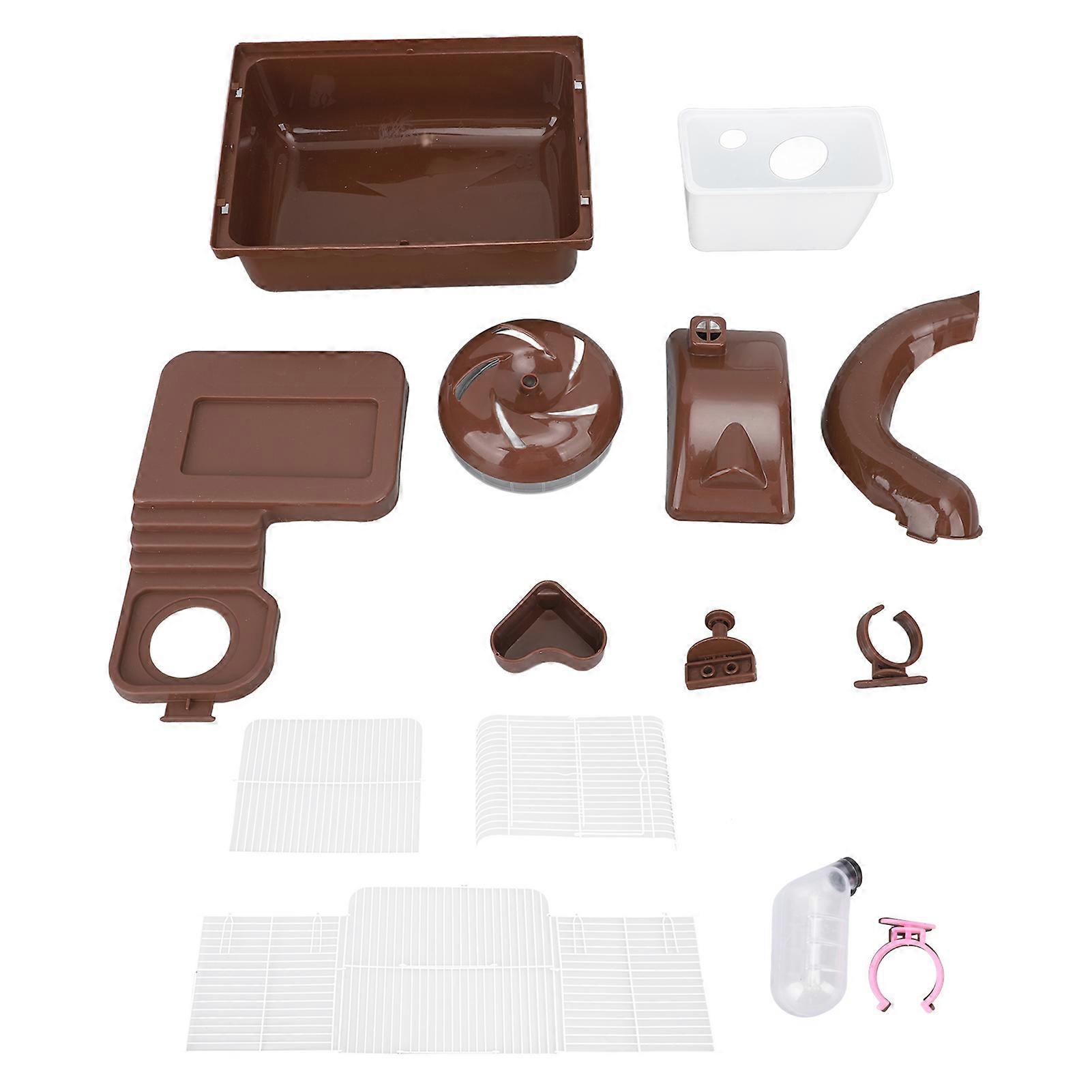 Hamster Cage Double Layer Fun Small Animal House with Running Wheel Slide Water Bottle for Golden Bear Coffee