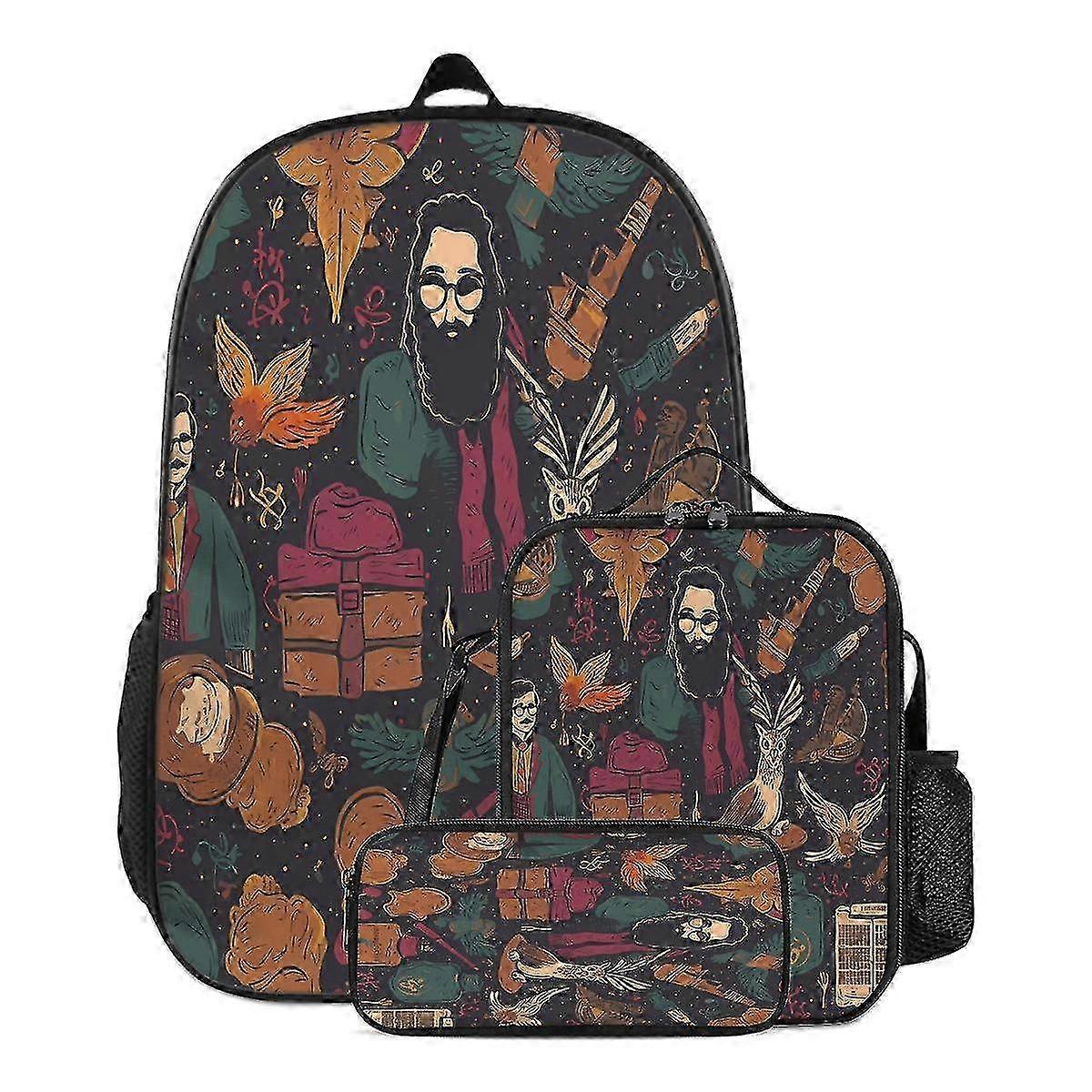 Harry Potter 3D School Backpack Lunch Box Pencil Case Wizard School Bag Magic Laptop Daypack, B-187