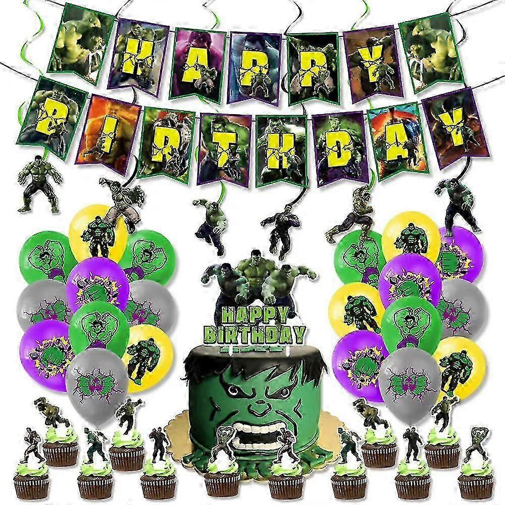 The Hulk Theme Birthday Party Decoration Supplies Banner Balloons Cake Topper Hanging Swirls Set