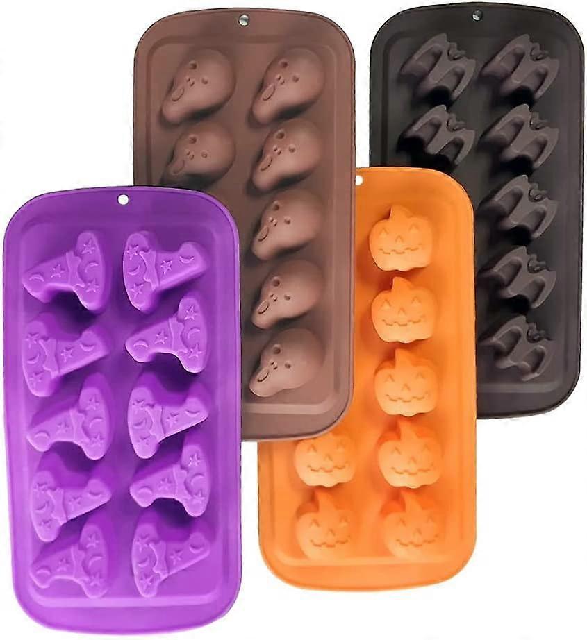 Halloween Candy Molds Chocolate Molds Silicone with Ghost Pumpkin Bat & Witch Hat, Mini Soap Wax Crayon Melt Mould Ice Cube TraHalloween Party Favor