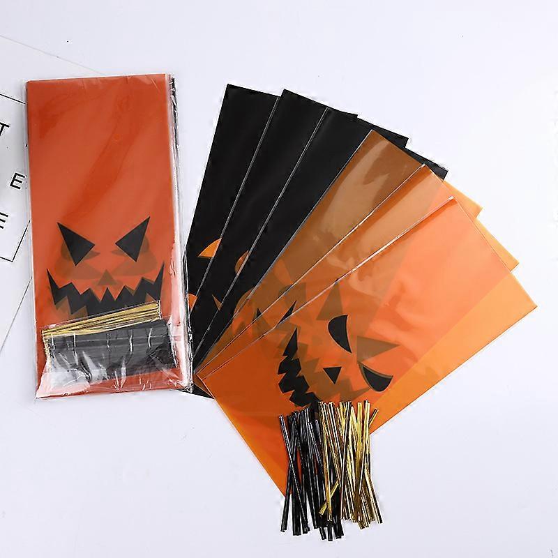 Halloween Favor Bags Pumpkin Pattern Flat Cellophane Treat Bags Halloween Plastic Party Bags for Bakery, Popcorn, Cookies, Candies and Dessert with