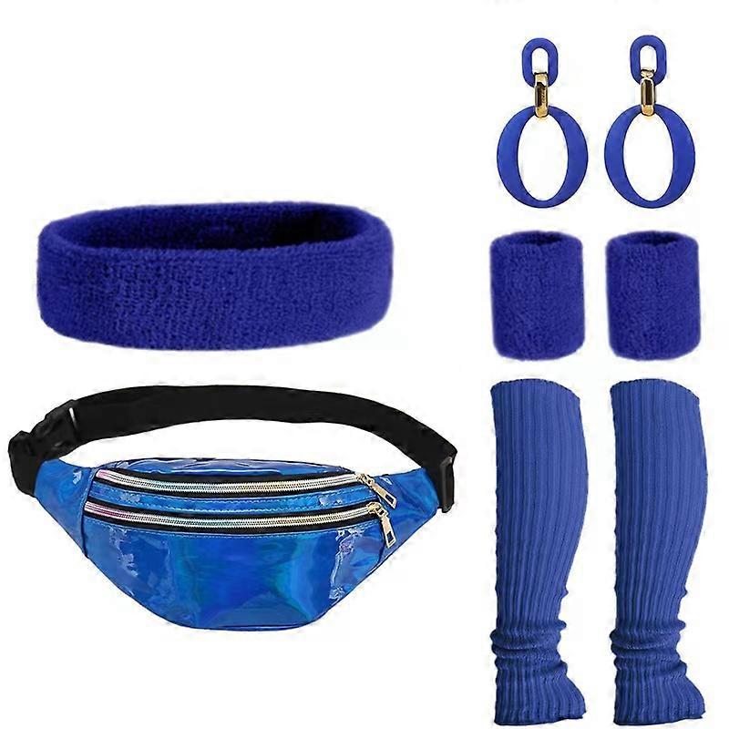 Halloween decorations Dark blue suitOne size1980s Women's Waist Bag Clothing Accessories Earrings Colorful Set Party Sports Wristband Hairba