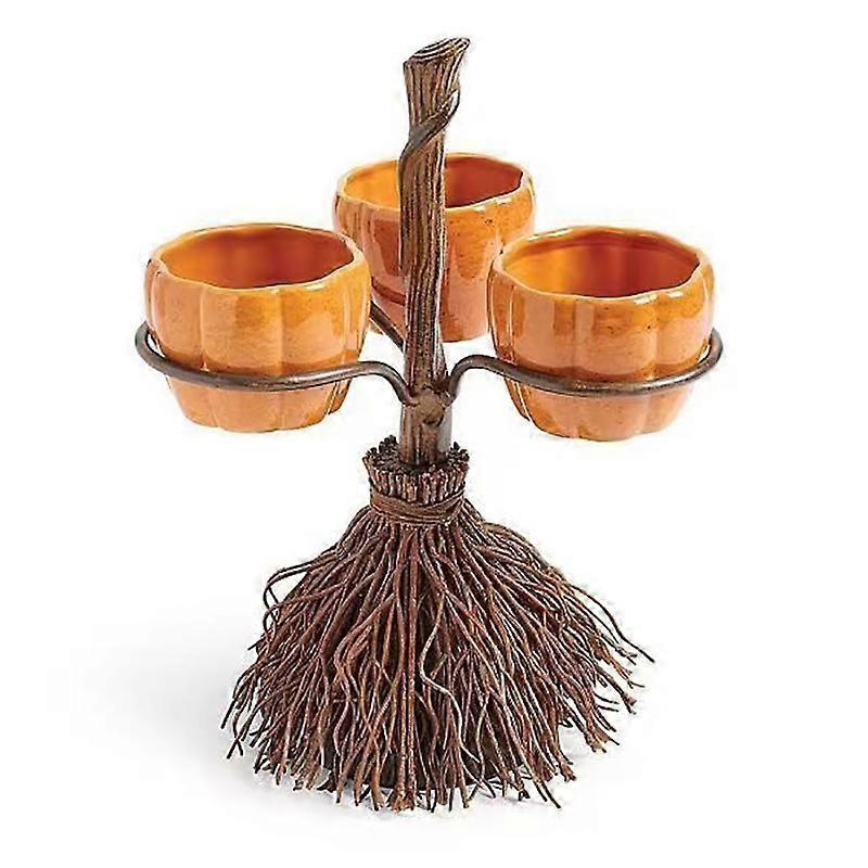 Halloween Broom Pumpkin Cup - Separator Fruit Plate Decoration Ornament, Resin Pumpkin Cup Broom Tray