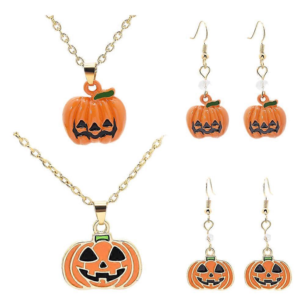 Halloween Earring Necklace Set Pumpkin Charm Orange Alloy Costume Jewelry 19.7×0.8×0.4in
