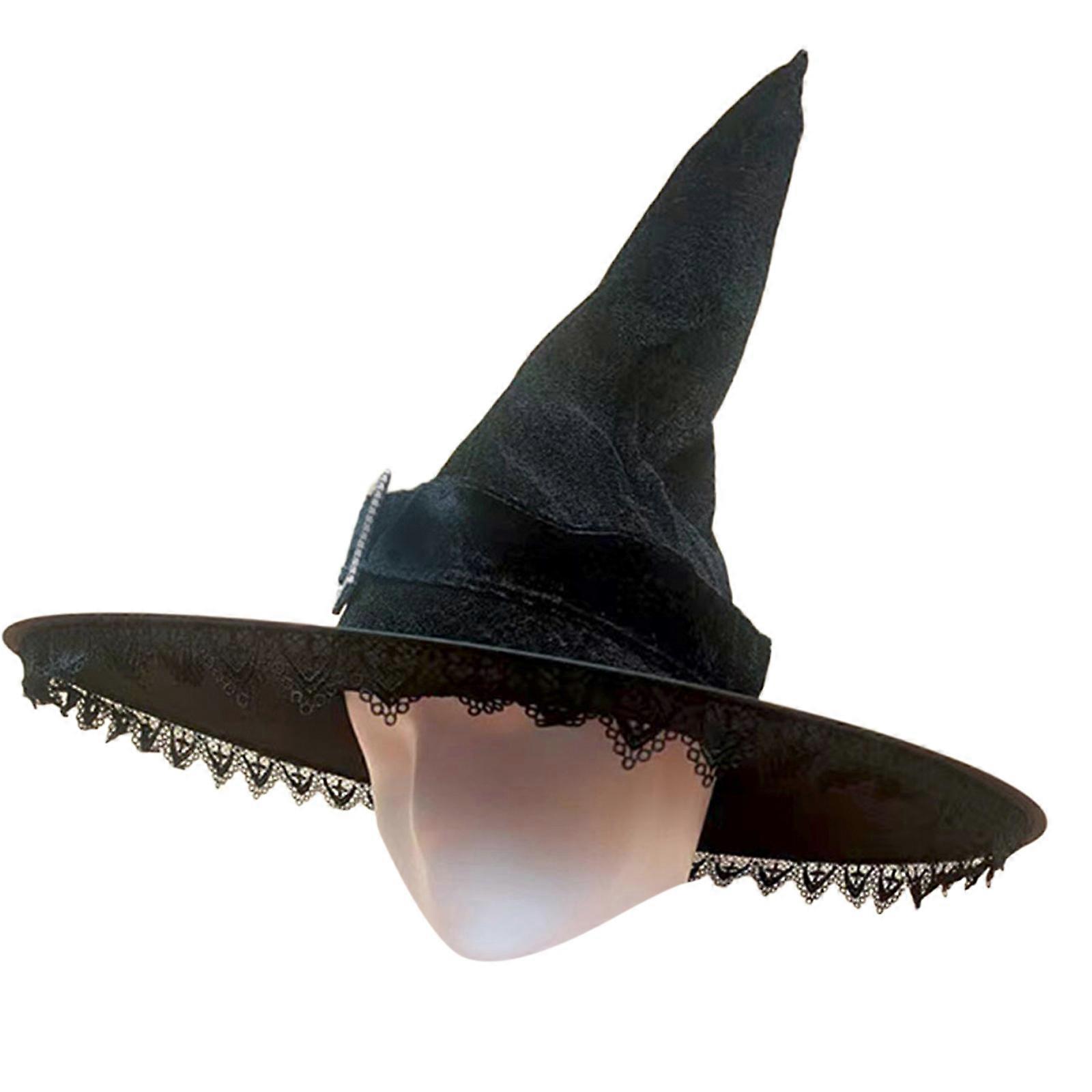 Halloween Witch Hat Delicate Velvet Witch Hats for Masquerade Exquisite Lace Adults Cosplay Costume Accessory Black