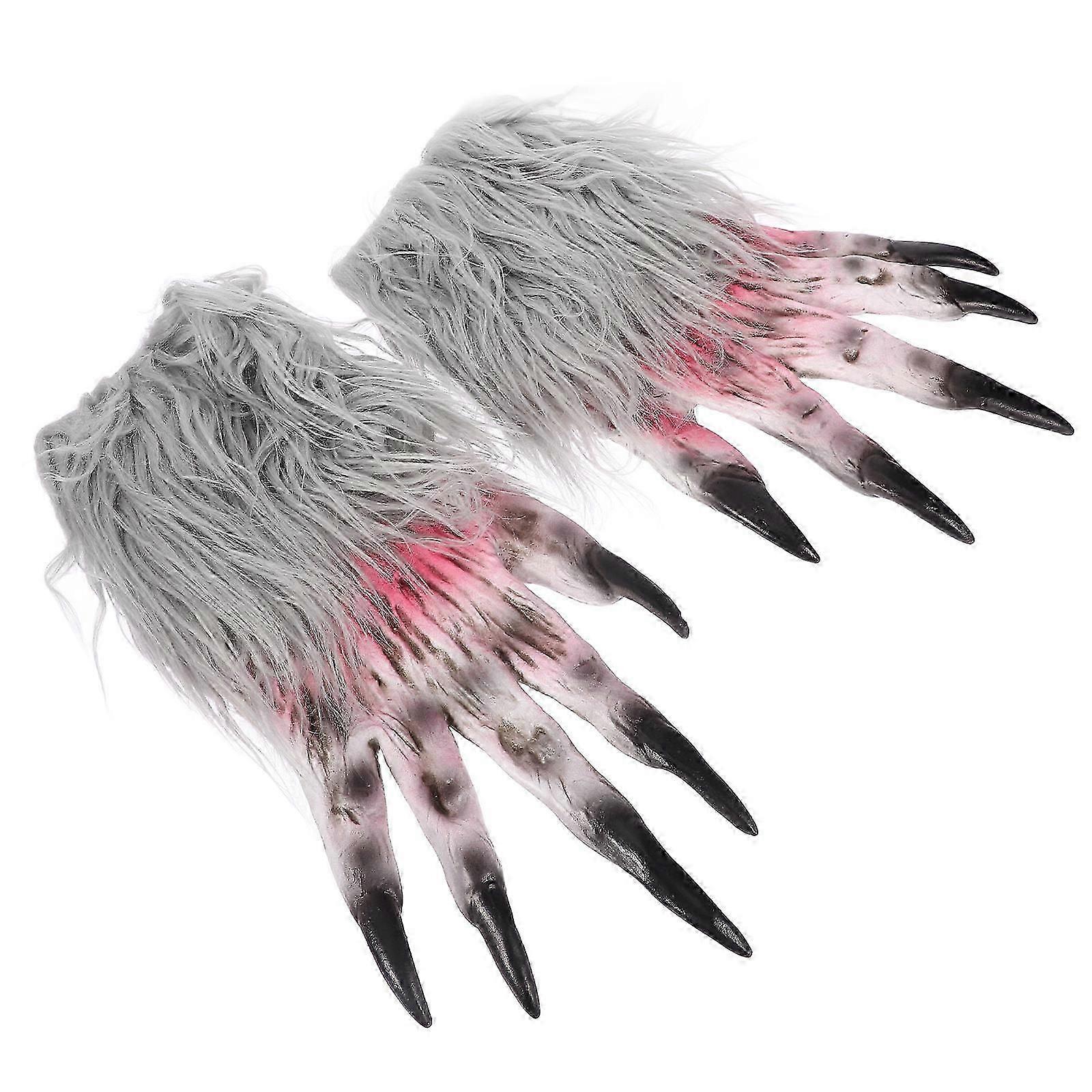 Halloween Wolf Gloves Scary Gloves Design Grey Latex Realistic Claw Molding 2Pcs