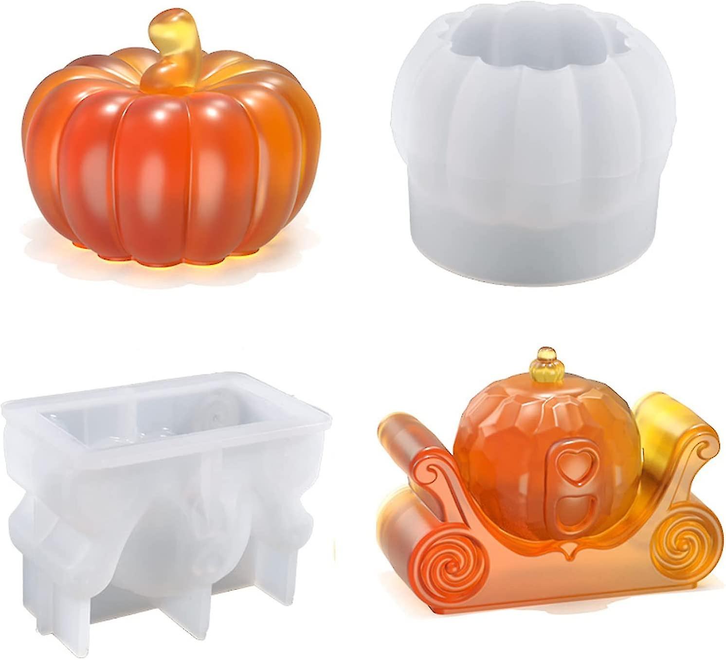Halloween Pumpkin Candle Moulds 3d Silicone Pumpkin Mold Diy Candle Making Craft Gift For Halloween Thanksgiving Decorations (white2pcs) A