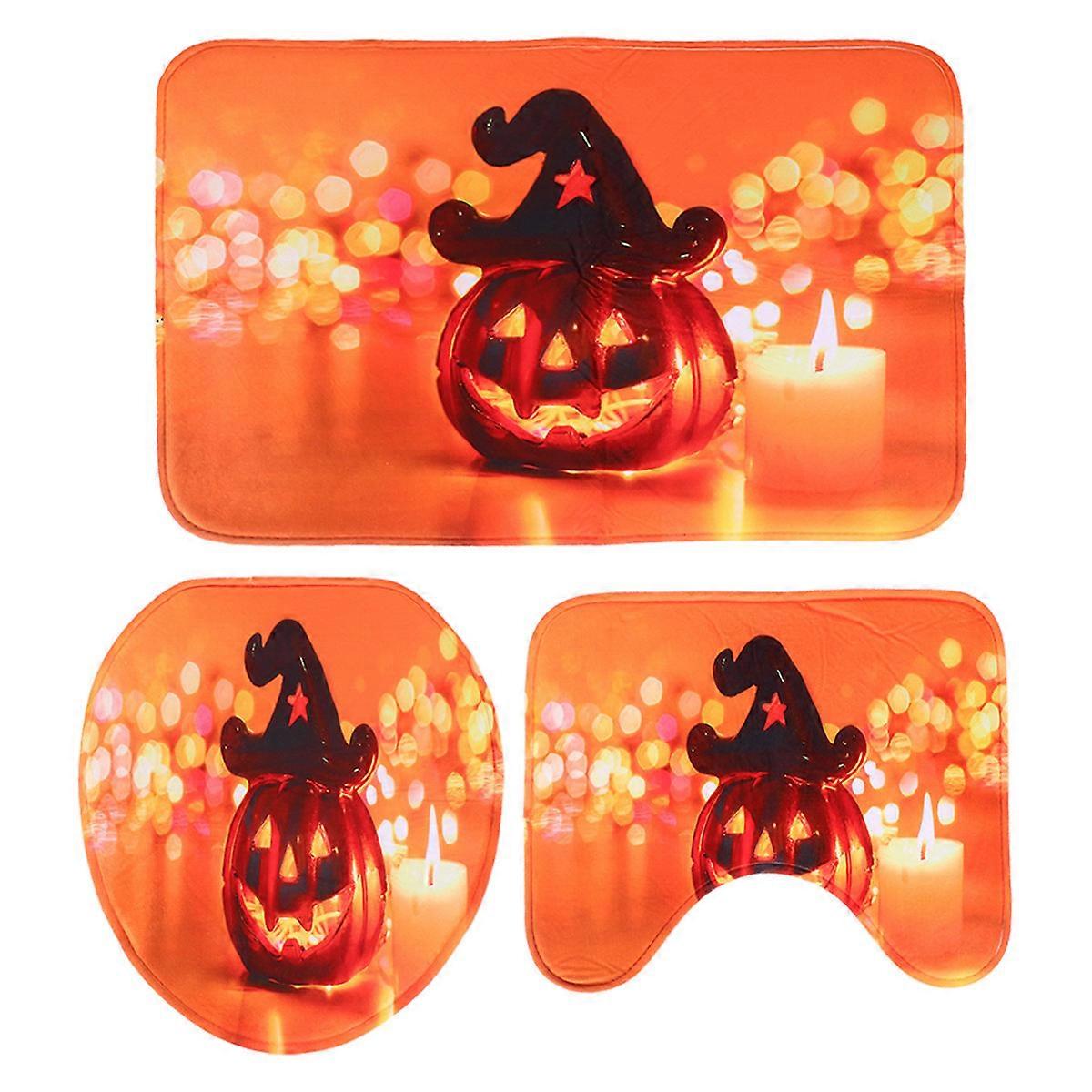 Halloween Pumpkin Bathroom Mat Set Non-Slip Absorbent Decorative 3Pcs