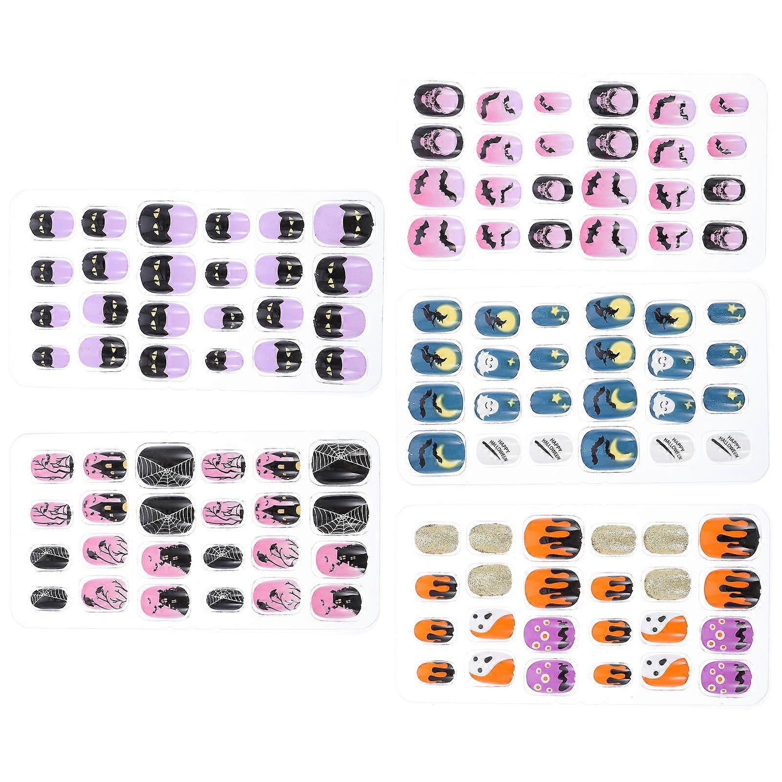 Halloween Kids Fake Nails Press On Full Cover Manicure 120Pcs Assorted Color Short Fingernails For Girls And Students
