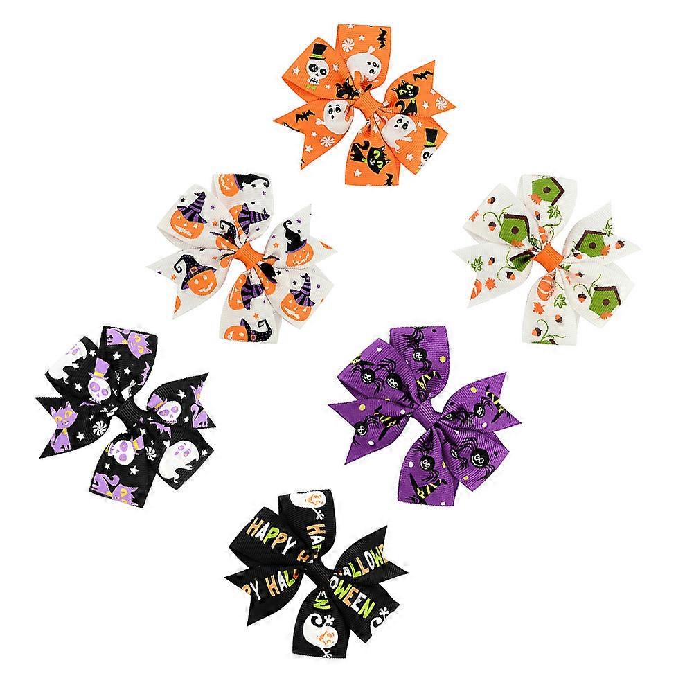 Halloween Kids Hair Clips Bowknot Cartoon Printed Barrettes for Children Girls Assorted Color 8x8cm Good Grip 6Pcs