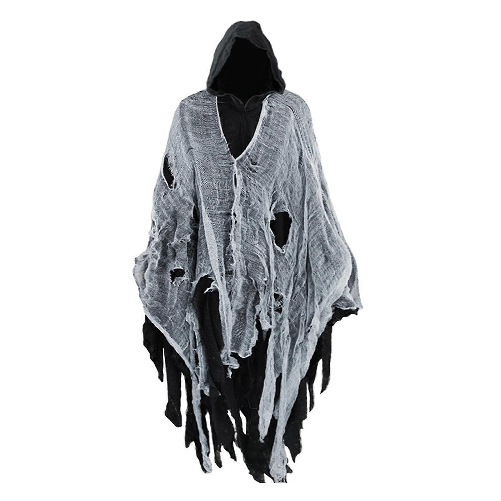 Halloween Cloak Hooded Cosplay Costume Long Wizard Cape with Irregular Mesh Haunted House NPC Props Halloween Party Supply Jikaix