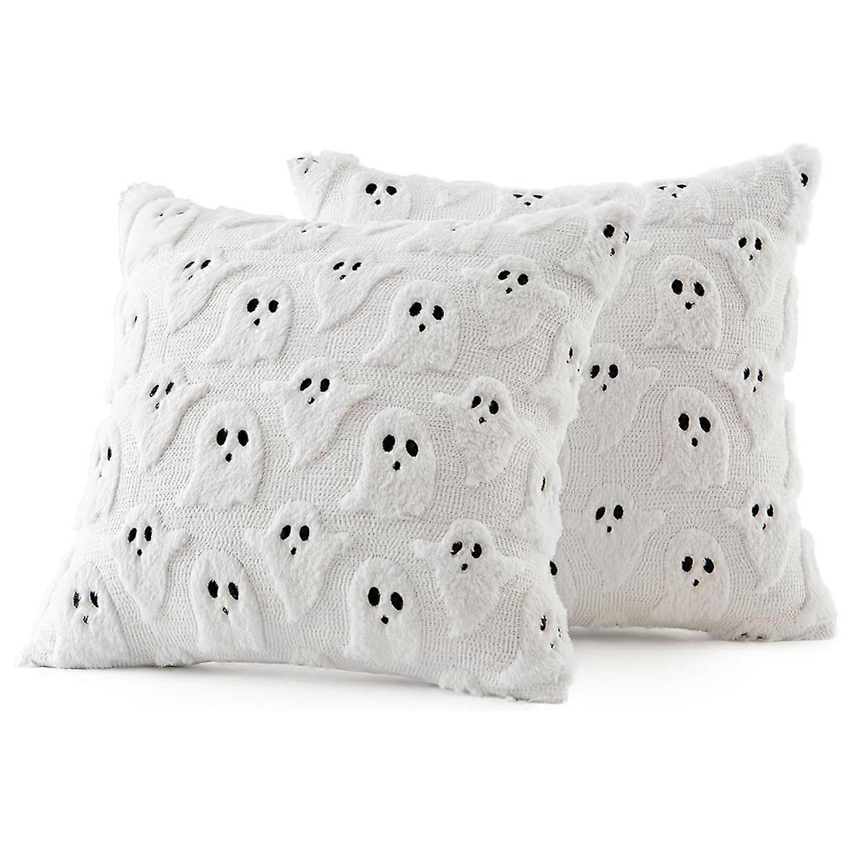 Halloween Ghost Throw Pillow 2Pcs Soft Plush Faux Fur Decorative Cushion Covers for Sofa Bed Halloween Decoration