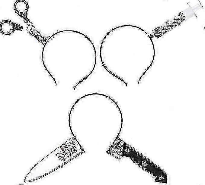 Halloween Costume Accessory Set 3 Pieces Horror Headband, Scissors, Knife, Syringe for Adults and Kids