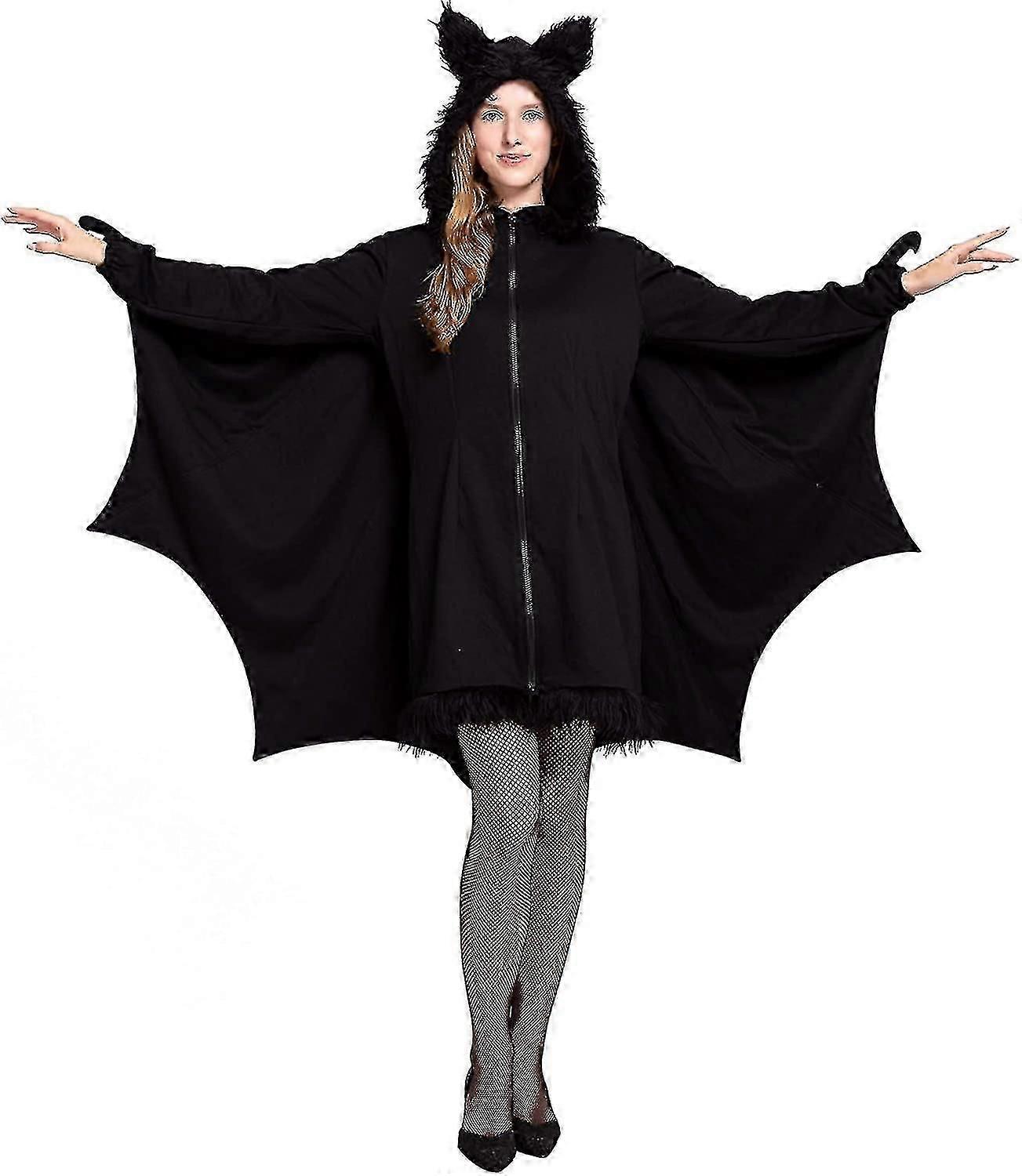 Halloween Costume Ladies Bat Cozy Black Animal Adult Cosplay Vampire Zip Dress