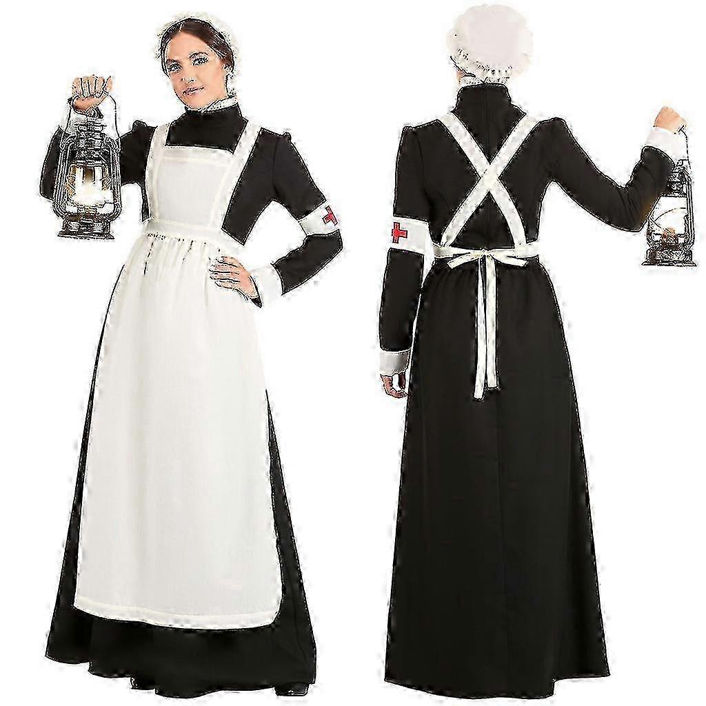 Women Halloween Cosplay Maid Dress Show Costume Nurse Role Play Long Dress Features: 1.It is made of materials,durable enought for your daily wearing 2.You are unique in this festival. 3. dress, perfect for outdoor/party 4.Make you more carnival on Halloween 5.Please start your performance to your heart's content. Product information: Gender:Women Item Type:Dress Material:Polyester fiber Pattern Type:Splicing Style:Cosplay,Vintage Sleeve:Long Sleeve Package include:1pc HAT and dress and apron and 1 cross sleeve ring Size Bust Waist Length M 96cm/37.80'' 78cm/30.71'' 138cm/54.33'' Bust: 96cm/37.80'' Waist: 78cm/30.71'' Length: 138cm/54.33'' Bust: 102cm/40.16'' Waist: 84cm/33.07'' Length: 140cm/55.12'' Bust: 108cm/42.52'' Waist: 90cm/35.43'' Length: 142cm/55.91'' Note: Due to the light and screen setting difference, the item's color may be slightly different from the pictures. Please allow slight dimension difference due to different manual measurement.