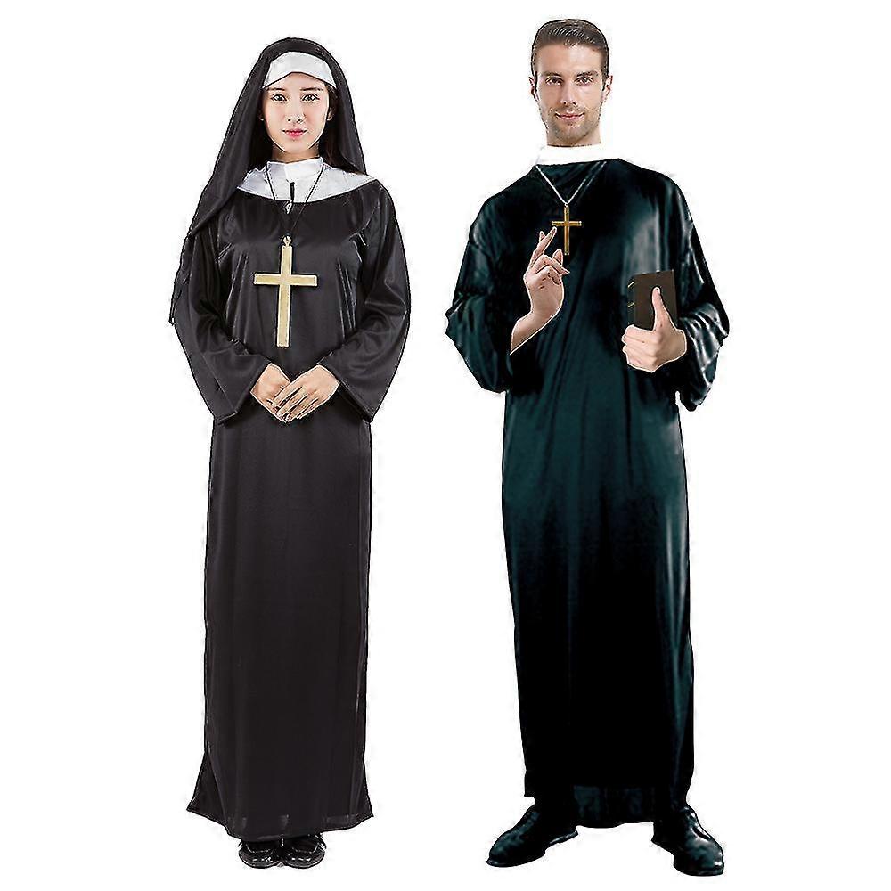 Halloween Costume Priest Nun Masquerade Adult Cosplay Mary Missionary Priest Costume