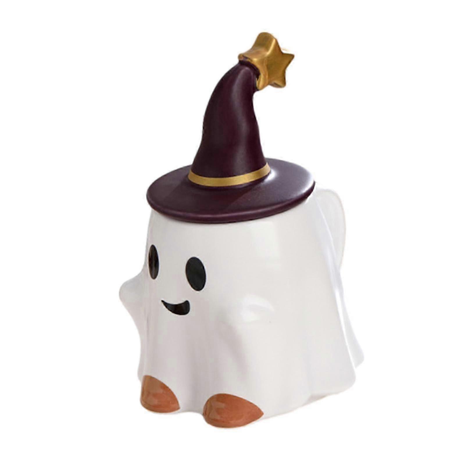 Halloween Coffee Mug, Ceramic Ghost Cup with Lid, 3D Spooky Drinkware, Smiling Elf Design