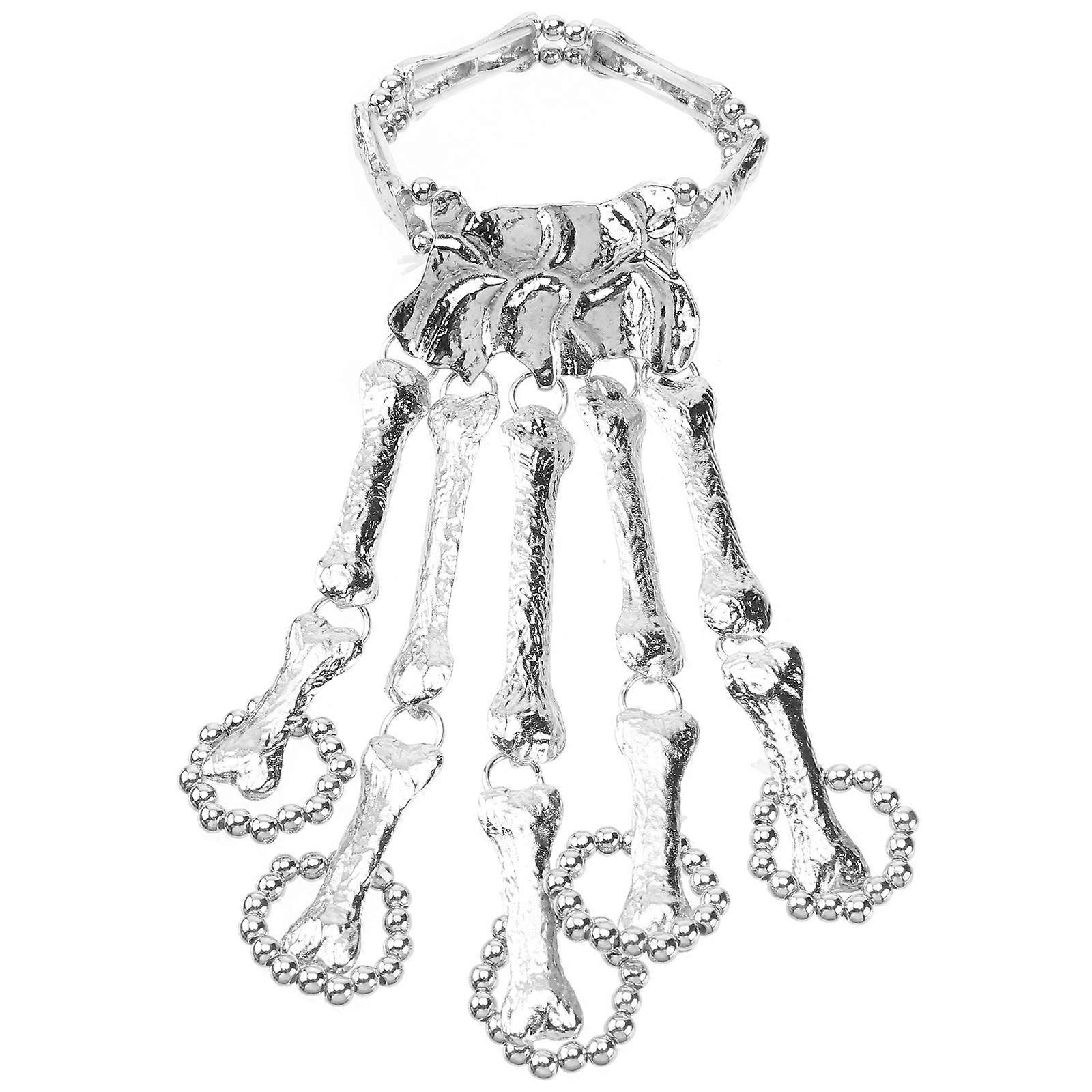Halloween Skull Fingers Bracelet Skeleton Ring Wristband Goth Alloy Bangle for Women Girls (Silver)