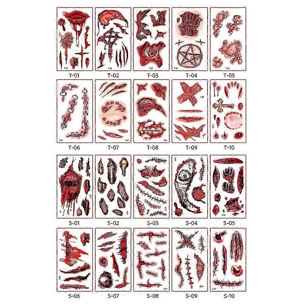 Halloween Scar Stickers Halloween Decor Horror Party Assorted Color Water Transfer for 20 Sheets